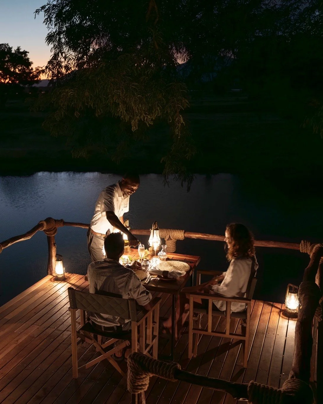 Beneath the vast African sky, Mana Sands transforms as night falls. The Milky Way stretches overhead, untouched by city lights, while the distant calls of lions and hyenas echo across the floodplain.
